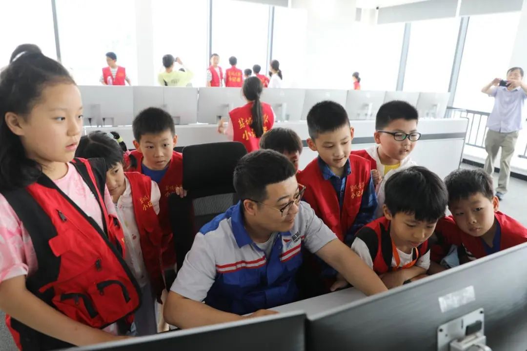 在自動化集裝箱堆場指揮中心,同學們觀看了現場操控,偌大的機器臂膀在工作人員的操作下精準落位。學生們驚呼:“哇,這么大的家伙輕輕操作就動了嗎!”“太酷了,以后我也想操作一下!”講解員對同學們各種“新奇”的問題一一耐心、細致地講解,同學們也因此對自動化堆場表現出濃厚的興趣。