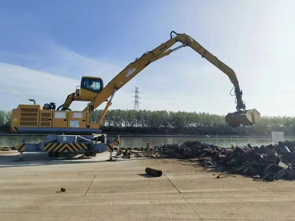 為切實解決作業(yè)效率低下的問題,亭湖港區(qū)調度組與創(chuàng)新團隊多次研究,最終確定使用抓料機作業(yè),同時為防止抓料機抓取廢鋼對抓斗造成損傷,團隊還特別制定抓料機改造方案,通過兩根定制鋼絲繩將電磁吸盤安裝到抓料機抓斗下方,并通過電纜線路改造,抓料機駕駛員可以在駕駛抓料機的同時操控吸盤。由于抓料機的靈活機動,可以自由伸縮抓臂,作業(yè)現(xiàn)場不再需要裝載機司機的參與。自改造實施后,港區(qū)廢鋼生產(chǎn)作業(yè)耗時耗力的難題得到了有效解決,極大地提高了港區(qū)生產(chǎn)運營效率,該項改進創(chuàng)新在保證安全的基礎上,共節(jié)省人工2名,作業(yè)時長由4天節(jié)省為2天,作業(yè)效率提高50%。