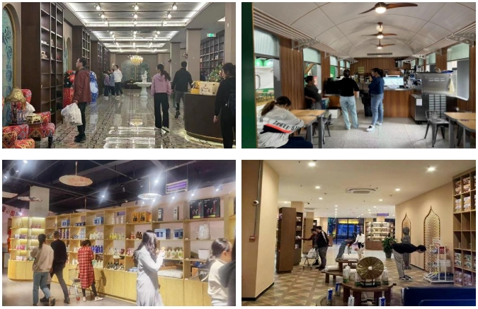 園區(qū)內(nèi)多元業(yè)態(tài)有機(jī)融合,購物、文化展示、休閑娛樂等服務(wù)一應(yīng)俱全,滿足了不同游客的個(gè)性化需求。特別是以國內(nèi)外特色為主題的展銷館,如俄羅斯館、大洋洲館、歐洲館等,讓游客領(lǐng)略各地文化精粹,輕松實(shí)現(xiàn)全球購。同時(shí),港泊面館、港泊雅苑、港泊韓膳閣、港泊中歐班列體驗(yàn)館和港泊韓式風(fēng)味體驗(yàn)店等特色餐飲也為游客提供了地道美食,備受游客青睞。