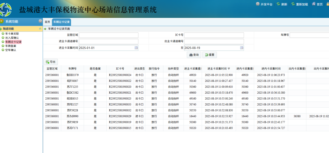 積極探索創(chuàng)新路徑,聚焦系統(tǒng)智能化升級,通過對場站系統(tǒng)進行深度智能化改造,集成車卡關(guān)聯(lián)、堆場管理、監(jiān)管倉管理、基礎(chǔ)資料管理等功能模塊,實現(xiàn)了實際重量卡口自動填報、自動申報、車卡自動關(guān)聯(lián)及到貨確認的全流程自動化,作業(yè)效率顯著提升40%,數(shù)據(jù)準確率高達99.9%,為保稅物流業(yè)務(wù)的高效運作提供了堅實的技術(shù)支撐。