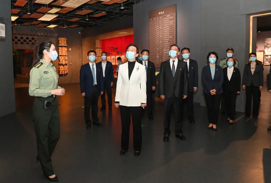 走進(jìn)新四軍紀(jì)念館,徐纓帶領(lǐng)大家參觀(guān)“鐵軍忠魂”主題展覽,認(rèn)真聽(tīng)取講解介紹,不時(shí)詢(xún)問(wèn)有關(guān)情況,通過(guò)一幅幅珍貴圖片、一件件歷史文物、一個(gè)個(gè)戰(zhàn)斗場(chǎng)景,現(xiàn)場(chǎng)接受革命傳統(tǒng)教育,體悟中國(guó)共產(chǎn)黨創(chuàng)業(yè)之坎坷、奮斗之艱辛。在“宋公碑”前,徐纓駐足凝視,聽(tīng)取蘇北沿海民心長(zhǎng)城“宋公堤”的修建經(jīng)過(guò)介紹,感悟老百姓“每聞潮聲思宋公”的深情,重溫中國(guó)共產(chǎn)黨全心全意為人民服務(wù)辦實(shí)事的光輝歷史。
