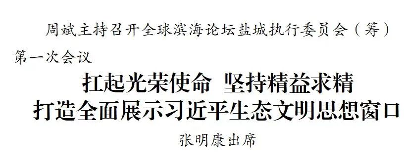 5月13日,市委書記周斌主持召開全球濱海論壇鹽城執(zhí)行委員會(籌)第一次會議。他強調(diào),要深入學(xué)習(xí)貫徹習(xí)近平生態(tài)文明思想,深刻認識辦好全球濱海論壇會議的重要意義,以高度的責(zé)任感和使命感,高標(biāo)準(zhǔn)謀劃、高水平籌備、高規(guī)格推進,更好展示發(fā)展成果、促進開放合作,為鹽城高質(zhì)量發(fā)展集聚更多資源、注入更強動力。市委副書記、市政府黨組書記張明康出席。