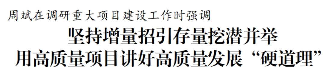 周斌在調(diào)研中強(qiáng)調(diào),重大項(xiàng)目是經(jīng)濟(jì)社會(huì)高質(zhì)量發(fā)展的“加速器”和“壓艙石”。今年各項(xiàng)工作已經(jīng)進(jìn)入下半場(chǎng),各地各部門要增強(qiáng)時(shí)不我待的緊迫感,堅(jiān)持一切圍著項(xiàng)目轉(zhuǎn)、一切盯著項(xiàng)目干,推動(dòng)重大項(xiàng)目建設(shè)跑出“加速度”,用高質(zhì)量項(xiàng)目講好高質(zhì)量發(fā)展“硬道理”。要堅(jiān)持增量招引和存量挖潛并舉,既注重招引新項(xiàng)目、好項(xiàng)目,又鼓勵(lì)引導(dǎo)現(xiàn)有企業(yè)開展“智改數(shù)轉(zhuǎn)網(wǎng)聯(lián)”、技改擴(kuò)能項(xiàng)目投資。要積極推動(dòng)制造業(yè)數(shù)字化轉(zhuǎn)型,促進(jìn)專精特新企業(yè)蓬勃發(fā)展,培育壯大智能產(chǎn)業(yè),加快構(gòu)建現(xiàn)代化產(chǎn)業(yè)體系,為推進(jìn)中國(guó)式現(xiàn)代化鹽城新實(shí)踐提供堅(jiān)實(shí)支撐。
