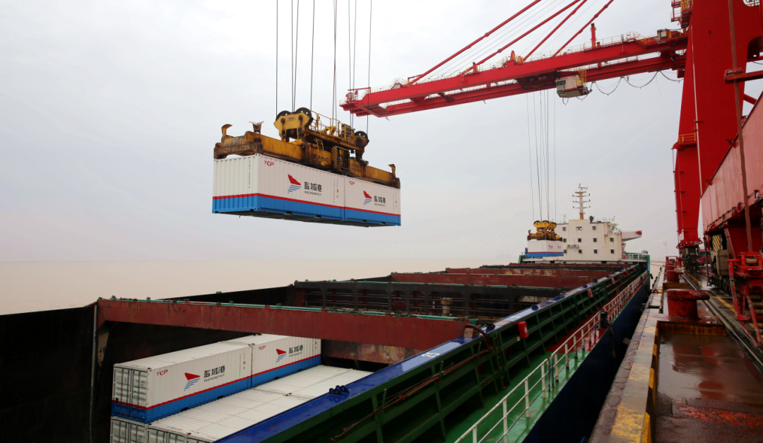 2.為進一步做好宿遷光伏企業的產品外貿集裝箱出口業務,組織精干力量,積極主動作為,牽頭組織大豐港區、淮安港、宿遷港、江蘇運興物流,形成“三港二航聯動”的一站式綠色快捷服務通道。通過“海河聯運”的方式,將外貿光伏產品集裝箱由宿遷港駁船轉運至淮安港,再由航運集團開通運營的大豐港區—淮安港航線接駁運至大豐港區,最后通過“滬鹽專線”運至上海港中轉出國,在外貿集裝箱各運輸環節上做到了無縫銜接,在物流效率上做到了準時準點。