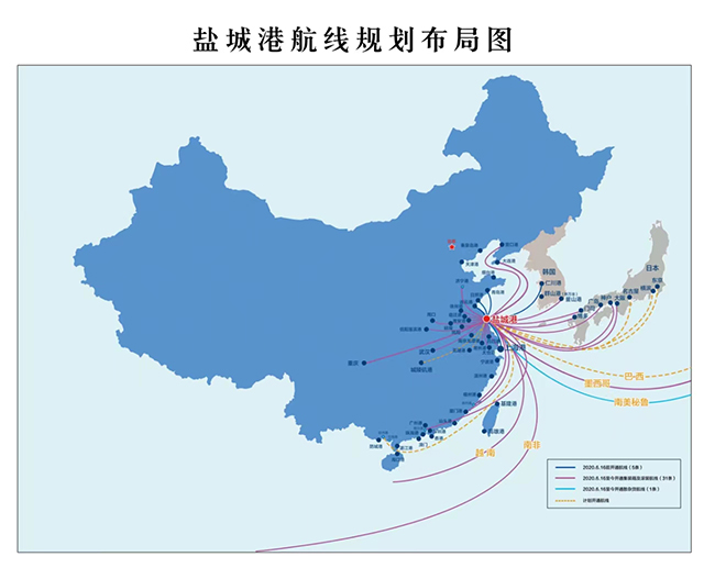 圍繞現代物流產業,推進集成式物流管理,主要從事集裝箱進出口貨物的攬貨、報關報檢、裝卸、運輸、訂艙、倉儲等業務。2022年實現集裝箱吞吐量55.1萬標箱,同比增長37.75%。2023年,完成集裝箱吞吐量66.1萬標箱,同比增長20%。現有國際國內航線43條,包括汽車滾裝航線4條,至南美雜貨班輪1條,集裝箱班輪航線37條,包括對韓、日、東南亞航近洋線4條,對滬內支航線2條(每周六班),至青島、日照、連云港、營口、太倉、呂四的沿海內貿航線6條,至河南周口、蚌埠、鳳陽、重慶、宿遷、上海、淮安、徐州、宿遷、武漢、太倉、常州、城陵磯內河以及至市域阜寧、步鳳、亭湖、寶聯、建湖的內河航線26條,逐步構建“海上聯結南北、內陸貫通東西、向海融入中日韓”的雙循環新格局。