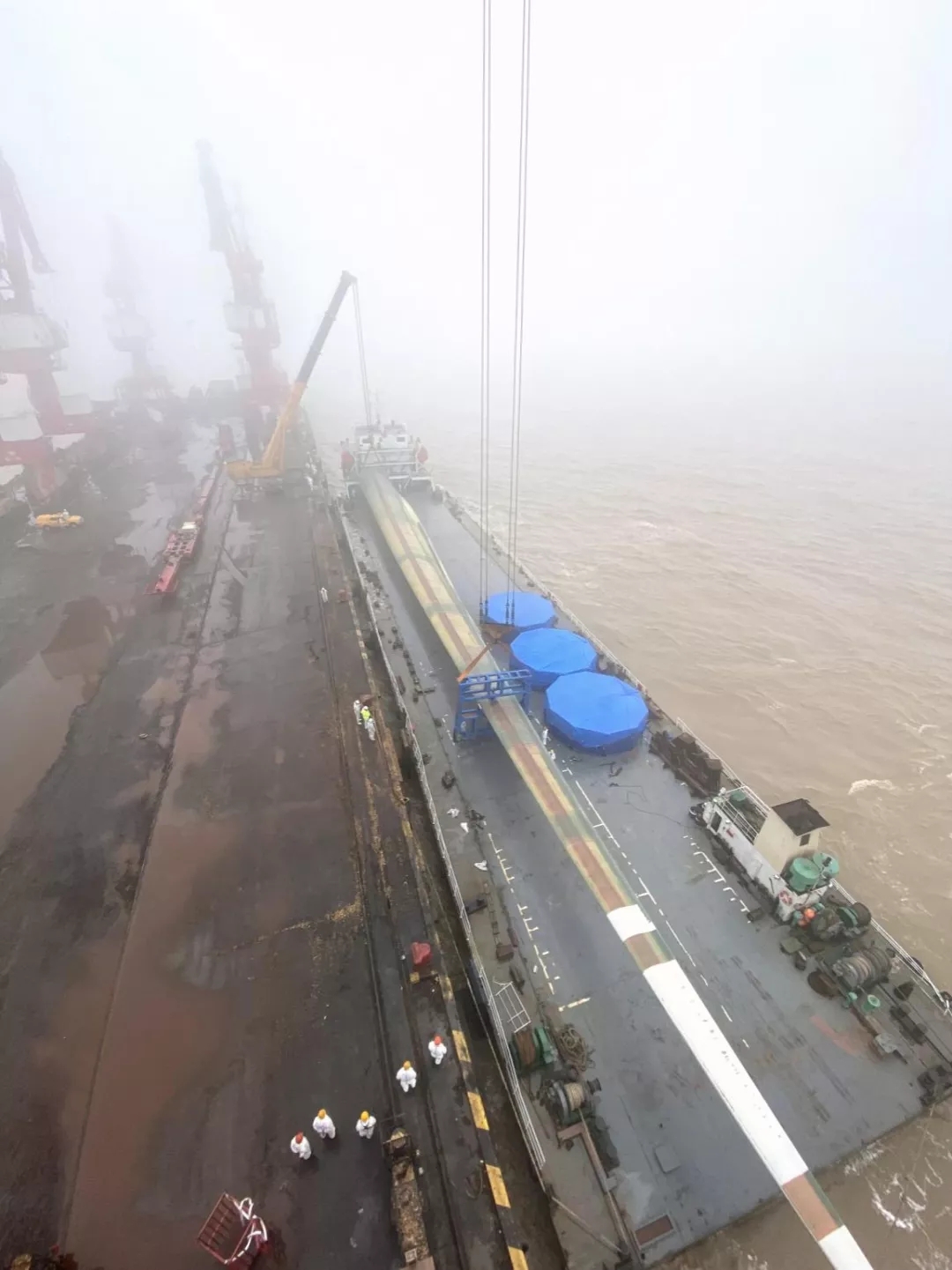 據悉,此前大豐港區吊裝的最長的風電葉片是90米,為確保本次葉片的成功出運,碼頭吊裝團隊經過多次推演和模擬練習,最終采用了“門機+汽吊”協同抬吊的方式。“風電葉片葉根部分重達50多噸,我們創新改變了之前的吊裝方式,利用500噸吊車吊裝葉根部分與碼頭門機吊裝葉尖部分相配合,成功吊運裝船。經過測算,以這種協同抬吊的方式最為安全。”碼頭吊裝負責人介紹道。此次風電葉片從起吊到裝運上船,整個過程持續不到20分鐘,充分展示了鹽城港大豐港區出色的重大件吊裝技藝。